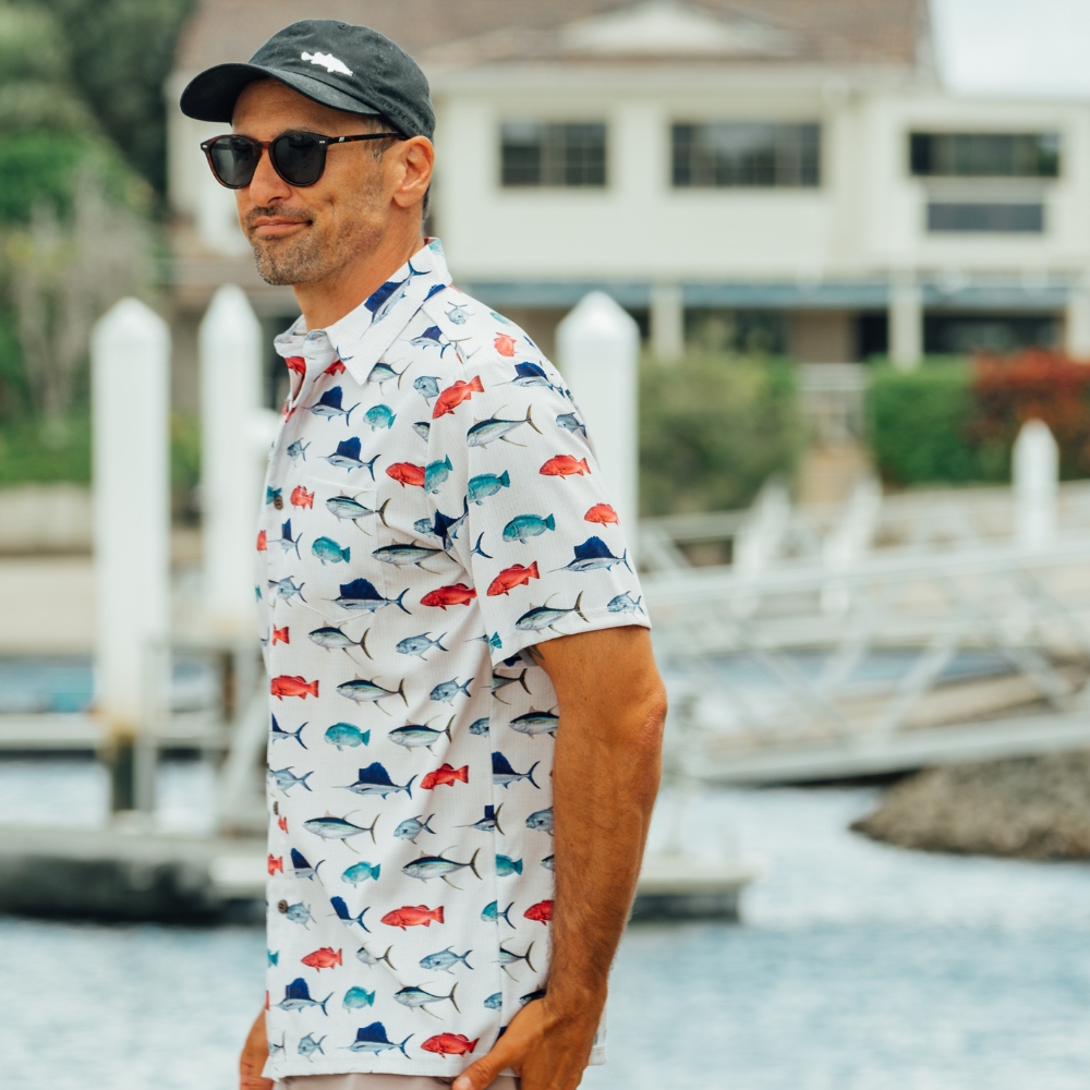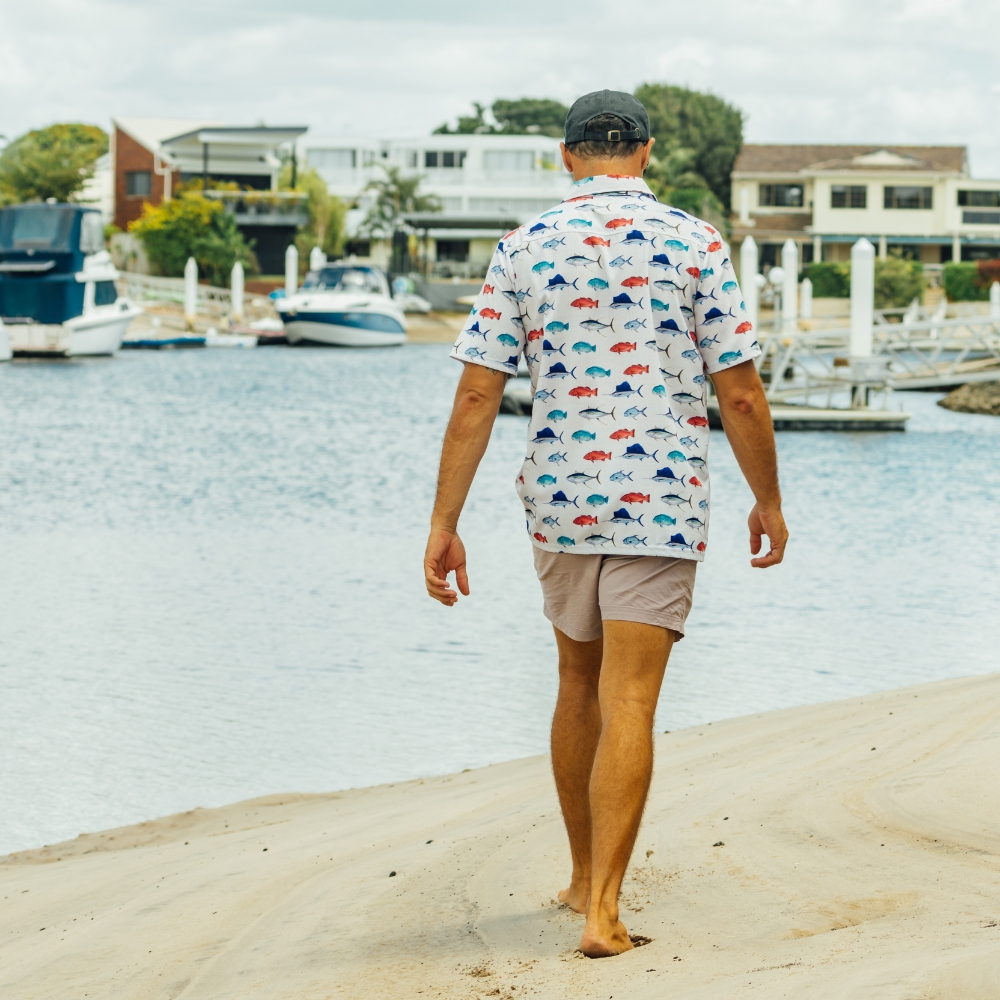 Made from lightweight 115gsm Party Poly, the Bluewater Gamefishing Button-Up is quick-drying and easy to care for—perfect for hot days on the water. With a relaxed fit and coconut buttons, it keeps you comfortable during the day and looking sharp for nights out.